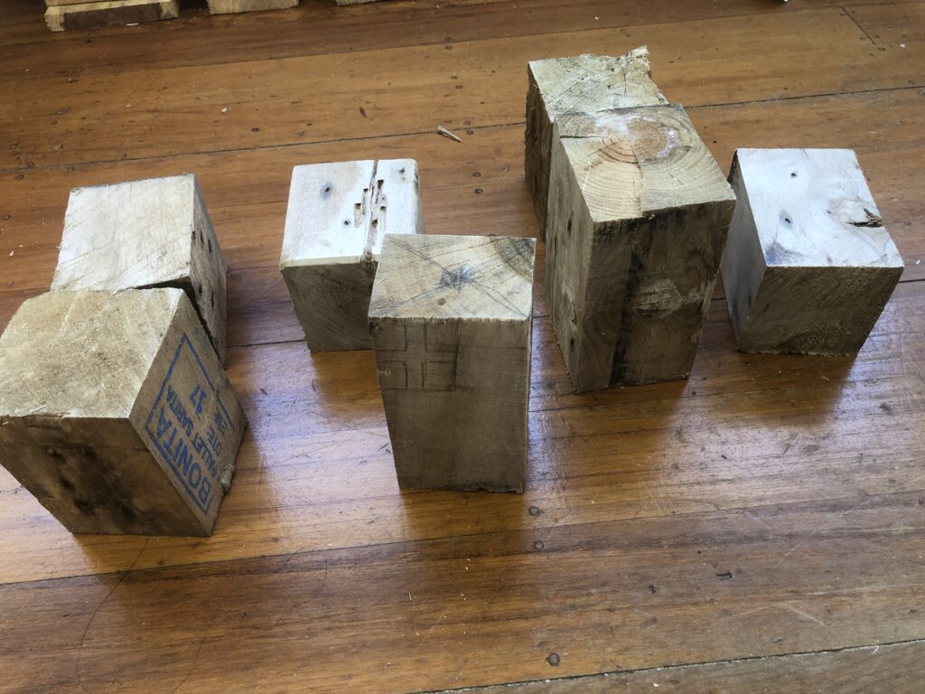 A bit of research confirmed that pallet timber is heat treated, not chemically treated, so it was safe for the project. Geoff cut them down to size, and from there, the students took over to create their robot gumball machines.